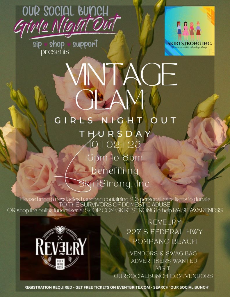 Grab your girlfriends and get ready for an unforgettable evening of vintage-inspired fun, fashion, and fundraising! Join Our Social Bunch as we host another dazzling Girls Night Out, this time with a glamorous twist, benefitting the powerful work of SkirtStrong Inc.—a nonprofit supporting survivors of domestic abuse.
